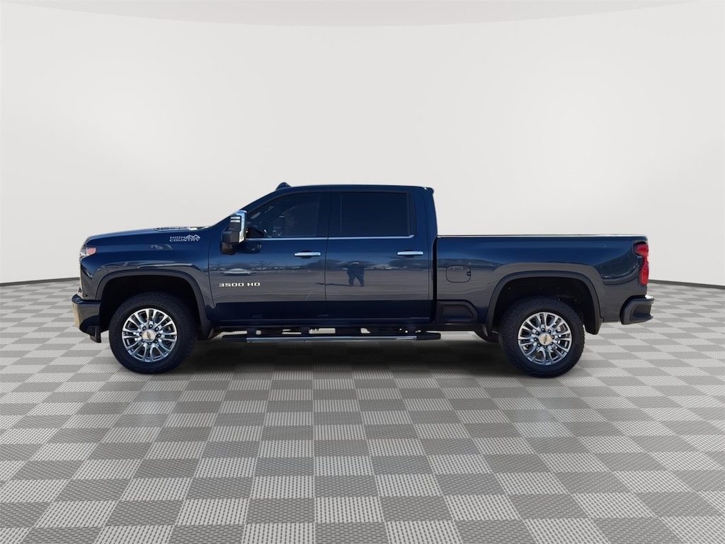 EMISSIONS, FEDERAL REQUIREMENTS, ENGINE, DURAMAX 6.6L TURBO-DIESEL V8, B20-DIESEL COMPATIBLE, TRANSMISSION, ALLISON 10-SPEED AUTOMATIC, GVWR, 12,100 LBS. (5488 KG) WITH SINGLE REAR WHEELS, REAR AXLE, 3.42 RATIO, WHEELS, 20 (50.8 CM) POLISHED ALUMINUM, 16-SPOKE, NORTHSKY BLUE METALLIC, SEATS, FRONT BUCKET WITH CENTER CONSOLE, FOR CREW CAB AND DOUBLE CAB MODELS, JET BLACK, PERFORATED LEATHER SEATING SURFACES, AUDIO SYSTEM, CHEVROLET INFOTAINMENT 3 PREMIUM SYSTEM WITH CONNECTED NAVIGATION, 8 DIAGONAL HD COLOR TOUCHSCREEN, AM/FM STEREO, HIGH COUNTRY DELUXE, TECHNOLOGY PACKAGE, SAFETY PACKAGE II, Z71 OFF-ROAD PACKAGE, GOOSENECK / 5TH WHEEL PREP PACKAGE, ENGINE BLOCK HEATER, ALTERNATOR, 220 AMPS, SKID PLATES, EXHAUST BRAKE, SUNROOF, POWER ON CREW CAB MODELS, WINTER GRILLE COVER, INTELLIBEAM, AUTOMATIC HIGH BEAM ON/OFF, LICENSE PLATE KIT, FRONT, MULTICOLOR 15 DIAGONAL HEAD-UP DISPLAY, REAR CAMERA MIRROR, AUTOMATIC EMERGENCY BRAKING, HILL DESCENT CONTROL, LPO, AUXILIARY TRAILER CAMERA, WIRED, LANE DEPARTURE WARNING, FOLLOWING DISTANCE INDICATOR, FORWARD COLLISION ALERT, SAFETY ALERT SEAT
